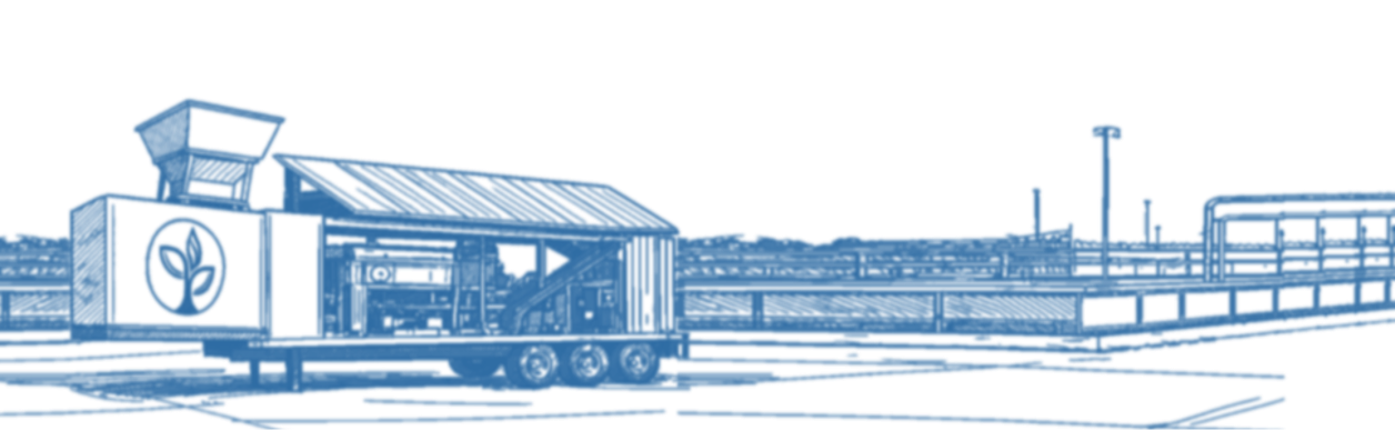 To be truly turnkey, the Biosolids+ Trailer system is designed for islanded operations with no grid connection, utility ties, or long interconnection queues—so deployments can move quickly, even at constrained sites. Our equipment rolls up, bolts on, and starts converting waste into biofuel.